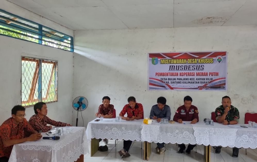 SINTANG – Pemerintah Desa Buluk Panjang, Kecamatan Kayan Hilir, Kabupaten Sintang, Kalimantan Barat, menggelar Musyawarah Desa Khusus (Musdesus) pada Jumat, 30 Mei 2025. Salah satu agenda utamanya adalah penetapan struktur kepengurusan Koperasi Desa Merah Putih (KDMP), yang menjadi tonggak penting dalam upaya meningkatkan kesejahteraan ekonomi warga.