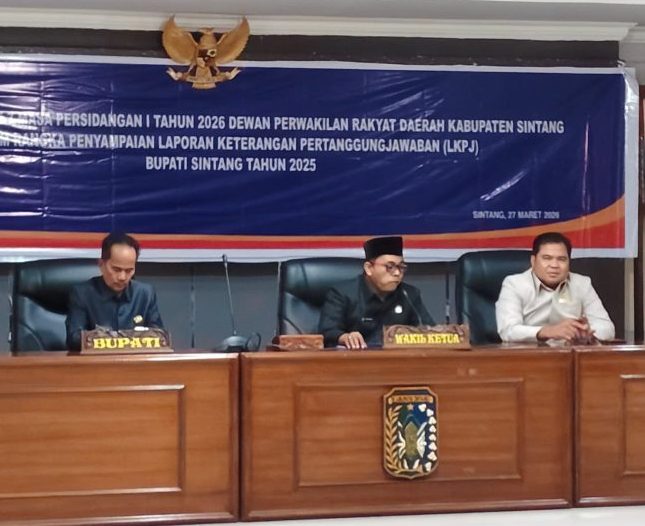 SINTANG, RS – Dewan Perwakilan Rakyat Daerah (DPRD) Kabupaten Sintang melaksanakan rapat paripurna ke-7 masa persidangan I tahun 2026 untuk menerima penyampaian Laporan Keterangan Pertanggungjawaban (LKPj) Bupati Sintang Tahun Anggaran 2025.